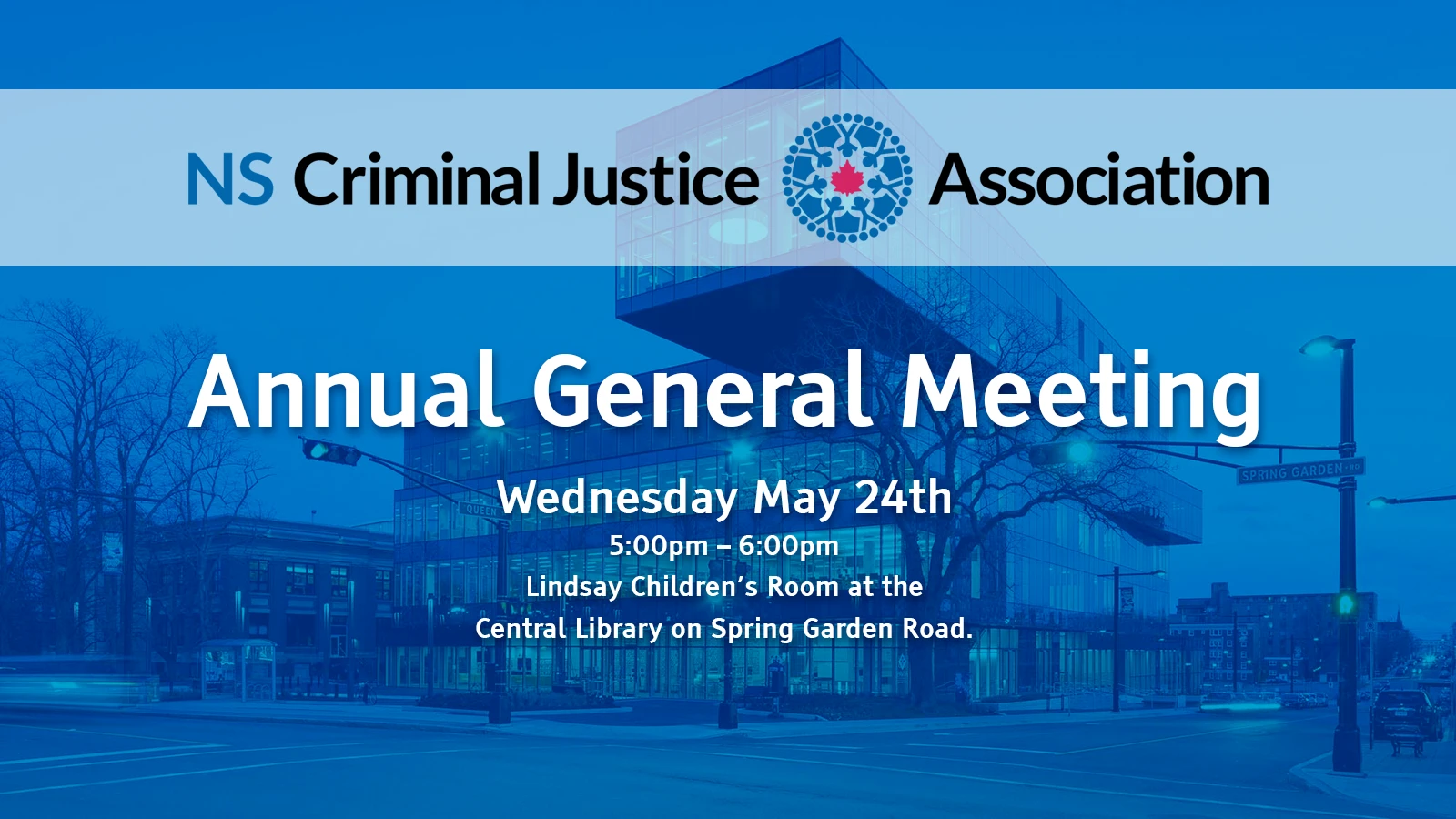 Join us at our AGM! Posted: May 8th, 2023 Category: Events, News Learn about the great work we have been doing over the past year, get an update on the HRM Drug Policy Consultation Project, get to know the Board of Directors, network with professionals in your field, and celebrate the successes of the NSCJA. Please RSVP by 4:00pm on Tuesday May 16th using the form below to that we have sufficient refreshments for everyone. AGM Details Wednesday May 24th5:00pm – 6:00pmLindsay Children’s Room at the Central Library on Spring Garden Road. Light Refreshments will be provided. We look forward to seeing you. Please contact us at info@nscja.ca with any questions or further details File Downloads AGM Agenda2023 Annual Report Previous Article Call for Applications and Nominations to the Board of Directors Next ArticleMichael Warren, NS Correctional Services, Kentville, is the 2022 John Dunlop Award recipient
