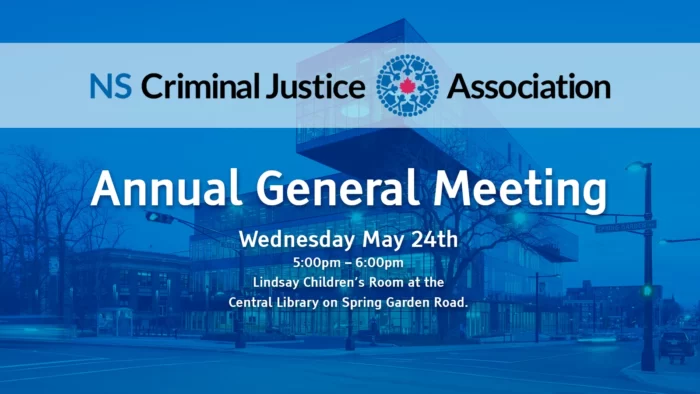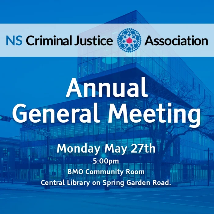 NSCJA Annual General Meeting Posted: April 3rd, 2024 Events The NSCJA Annual General Meeting Save the Date is scheduled for May 27th 2024. Please save the date if you are interested in attending. AGM Details Monday May 27th5:00pmBMO Community RoomHalifax Central Library Please RSVP by midnight on Sunday May... Continue Reading